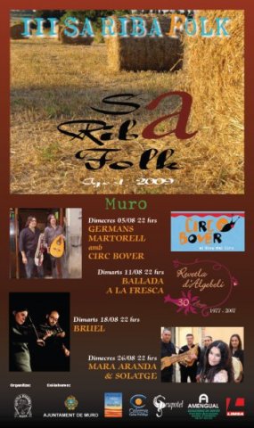 Aquest Agost els dies: Dimecres 5, dimarts 11, dimarts 18 i dimecres 26 al Passeig de Sa Riba de Muro a l'alçada de les Cases de Can Massanet celebrarem una altre edició del festival aquest cop amb la presència de Mara Aranda, Els Germans Martorell, Bruel i una ballada a la fresca, per a qui ho enyori, amb la Revetla.